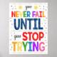 DU MISSLYCKAS ALDRIG TILLS DU SLUTAR FÖRSÖKA! Få studenter att tänka med detta tänkvärda, motiverande, inspirerande och upplyftande - sluta aldrig att försöka - poster inte ge upp utskrivbara. Ett roligt, glatt och skarpt tillägg till klassrummet, huvudkontoret, social-arbetet eller skolrådgivningskontoret poster utmana studenter att gå vidare med behållan även när det blir svårt - sluta aldrig försöka! En underbar poster att stanna i en skola i mitten eller i ett klassrum. En utmärkt poster för skolrådgivningskontor, terapeuter eller psykologer att påminna barn och tonåringar om att det enda verkliga misslyckandet är att sluta tro på sig själv, allt annat är bara en lärorikt eller en språngbräda på vägen mot sitt mål!
