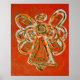 Färgning av en vit och guld ängel på orangens bakgrund.