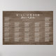 Sittplatta av brun träkornig bröllop poster. Rustiskt trä ser ut med många avsnitt av vit, tryckt text. Sätta gästerna vid mottagningen genom att registrera deras namn i alfabetisk ordning eller efter bordsnummer. Uppgradera för en tjockare papper typ.