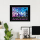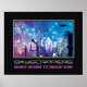 Stadsstaden byggnad med poster vägmotiv, med stadens byggnad och skyscrapernas bakom staketet och en väg som är stängd med vissa barriärer. Bakom dem finns himlar med blått och lila nav med strålar. Där finns frasen/citatet "Skyscraper, människans önskan att nå Gud" under bilden. Du kan ändra text och lägga till citatet eller en dikt. Ni kan också göra det demotivt.