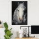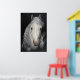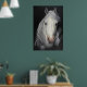Vita tallongmålning poster. Denna vackra målning av en vit hingst är ett måste för alla hästälskare och för alla sak hästdjur. Den här oljan på målarduk har den stolta och stiliga huvudet på en stark, vit hingst mot svart bakgrund, så det verkar som om han strävar mot tittaren.