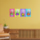 En födelsedagsljus brännmärks på var och en av de fyra ätliga popkonst-muffinsar som täcks av regnbåge i jimmyr. Det är en firande av utsökt popkonst-pastor att lägga frosten på din speciella dag. Ha lite roligt för att dekorera de här visuella muffinsarna och Anpassa ditt köp med ett personligt citat, ett foto eller namn!