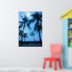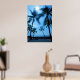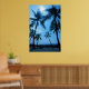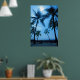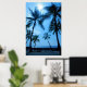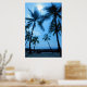 En häpnadsväckande bild av vacker hawaiisk handflatan träd som sveper framför det blå tropiska himlar och havet.