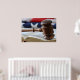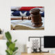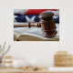 Trädomares gavel på en bibel. Den amerikanska flagga bakgrund.