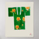 Poster featuring a green Japanese nagajuban with gold/yellow magnolia flower designs, created by Alan Skyrme.