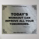 Den här motivationsdugligheten poster i stål och svart är ett fitness-citat från den motiverade författaren och designern Felicity Luckey. Den här gymmet poster i en serie av 52 motivationsgym poster för inspiration och träningsmotivation. Lösenordet lyder: DAGENS ARKOUT KAN FÖRBÄTTRA ALLA DINA TOMORROWS. ~ Felicity Luckey