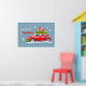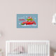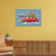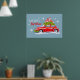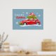 Poster för God jul, med en söt illustration av en skräddarsydd bil med grenar och lådor med presenter på tak.