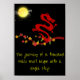 Kinesiskt ordspråk poster: "Resan på tusen mil måste börja med ett enda steg." Dra med dragon i tonljusbild. Det skulle se underbart ut i vilket rum som helst.