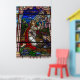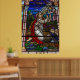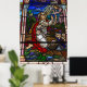 Ett nedfläckad glasfönster vid Dam i Rosarkyrkan i Little Italien, San Diego, Kalifornien.