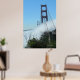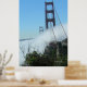 Fog kryper över Golden Grind brons däck vid ingången till San Francisco Bay, under ett briljant blå himmel. Visa från besökare på plaza i norr.