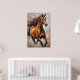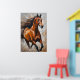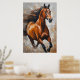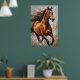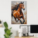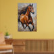 En HD porträtt oljemålning stil poster en brun häst som flyter av sig självt med håret i vinden