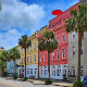 Bild som fångar den vackraste färgaden byggnad i Charleston, SC. Denna poster är ett måste för alla som har fallit i kärlek med Charlestons sydliga charm.