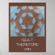 Kylt block i brunt och blått "slott" mönster. Det centrala "slottet" är en brun stjärnform, omgiven av "6-sidig vägg" med "klocka torn" utmed väggarnas mitten. Texten är i "stygn" typsnitt (kan vara personlig): "Jag filtar, därför är jag". Anpassa med egen bild och anpassa bakgrunden för samordning.