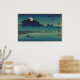 Fū keiga ~ Den här färg-träsket visar en måndagskväll med en man som poppar en liten båt när måne stiger upp bakom en grova träd. Konstnären: Andō Hiroshige (Utagawa Hiroshige) , 1797-1858. (Obs! pappra gräns är digitalt skapat.)