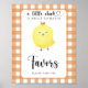 "En liten kyckling är på väg." Fira med den här tecknaden, kyckling, temat babydusch party! Söt chick med baby ansikte. Orangens bur.