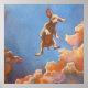 Fyrkantiga poster med en målning av en valp som flyger i blå himmel med moln. Det här är en gåva för att få någon att le. Underbar för ett barn eller ett medicinskt väntrum.