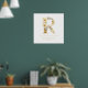 Delicate Romantic Floral R Letter in Gold Glitter Effect Posters for Nursery Decor.
