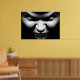 Ansikte i Evil Vampire Poster med en Evil Vampire Ansikte Leering med Glowing Red Ögon och Fangs Bared