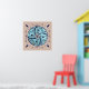 En abstrakt, 4-sidig mandala-design i marinblått på blek terracotta. Den här designen består av symboler som inspirerats av inhemska amerikanska specialtecken och sandmålningar. Allt har betydelse, att det har att göra med läkning, lång livslängd, skydd, styrka, tid och kontinuitet, jord och sol. Alla satte sig över en blå fullt måne.
