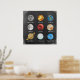 Ursprungliga vattenfärgsbilder med planeterna och måne