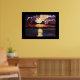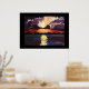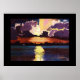 En vacker oljemålning av konstnären Jo-Ann Hayden , om ett sol som sprider sig genom molnen för att säga god natt till världen, vilket återspeglas på en lugn sjö.