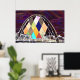 Vårt färgstarka skotska tema poster utskrifter med en modern tolkning av Glasgows Clyde Arc-brygga, mer allmänt känd som "Squinty Bridge" bland norska. Några av maskstöden i metall har varit färgad in, medan natten himlar kan ses genom andra. Molnen bakom bron har behandlats med en mjuk, neonglöd effekt. Poster skulle vara en perfekt för älskare i Glasgow, eller någon med norska rötter som har modern konst och ljusa färger konst.