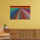 Denna poster i öga är en digital målning av ett abstrakt som består av vinklat linjer nästan som vägar som leder till ett rött och guld. Linjer är snävt och närmar sig varandra vid horisonten, ge ett intryck av att resa. De finns i varje färg av regnbågen, inklusive rött, orange, grönt, blått, lila, rosa och guld. Poster skulle göra ett starkt men harmoniskt färg påstående i vilket rum som helst.