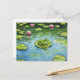 Skaffa sommardagens lugn med det här vykortet för vattenfärg med en charmig grönt groda som vilar på en liljepåda i en stillastående damm med delikat rosa vatten lilies. De levande skuggorna av grönt och blått ger en känsla av harmoni och koppling till naturen. Detta vykort ger en perfekt till djur älskare, naturentusiaster och konstbeundrare. Det är också ett vackert tillägg till all vykortssamling eller ett tänkbart sätt att skicka varmt önskemål till vänner och familj. Perfekt för: - Postkortsinsamlare - Groda och vattenfärgskonst älskare - Sändning varmt, naturinspirerat hälsning.
