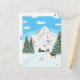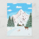 Ett kort med en underbar scen med snöberg, snö täckte evergreens och en manlig hjort tittar ner i en rustik stuga. Originalteckningen av W.B. Bilden, bakgrunden och texten kan vara personlig.