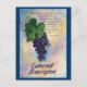 Cabernet Sauvignon Vin Grapes Painting: visningarna Cabernet Sauvignon vin druvor. Citatet stater, "A red vin med en karakteristisk svart vinbärssmak med antydningar om tobak, cedar och mynta. Den har en väl rundad stil och kan betraktas som kung av röda druvor." Återgiven i vattenfärg.