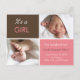 Tillkännagivande i flicka med chic färg-blockdesign i rosa och brunt. Ladda upp foton i det utrymme du fått och ange baby info.
