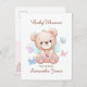Fira mamma med en söt björn och ett portionskort för babydusch. Framsidan har den speciella händelsen namn, namn i mamma och hennes monogram. Information om babyduschhändelsen finns på baksidan av vykortet för inbjudan. Det finns också en QR-kod som kan användas för svar på OSA (eller till och med ett register över babyduschar om endast en webben adress behövs). På baksidan finns det utrymme för både din returadress och mottagarens utskick adress att få dem direkt tryckta på vykortet. Baksidan har också rosa som fokus för färg. Utformning av björn och fjärilar. Använda mallen som ska anpassas.