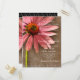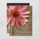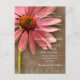 Vackert Elegant Rosa Gerber Daisy Bröllopinbjudan till Brown Faux tryckt Linen Struktur Background ge, det här är ett jordbrukshus Rustic Land som känner perfekt för en boho bohemian utomhuslada bröllop.