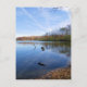 Skicka en anteckning till någon med detta vykort av en serene sjö som återspeglar strömmarna av upptagna resenärer i jet.