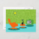 Det sägs att hundar har ägare och katter har personal. Kattdjuret på det här Kattunge-vykortet för Retro Space Age kunde inte godkänna mer! 1960-talets minimalistiska konsthantverk i stil har en slank, svart katt i ett modernt vardagsrum i mitten av århundradet. Det sofistikerade rummet har en grönt, en stenvägg. Maten är akvarium med tårskuggor. Rummets inredning omfattar en gult, sputnik light figur, en orange-barnstol med matchande fotstol och en grönt-TV med kanin öron. Den lyckliga svarta katten syns på fotbollen framför tv:n. Dess favoritshow är på! På TV-skärm kan vi se en svart och vit klassisk TV-familj lösa livets problem på en halvtimmes show. Denna utformning är korrekt, om vi säger det själva.