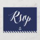 vykort av nautiska bröllop OSA med marint blått och vitt rand, vit fästpunkt och vit anpassningsbar, tryckt på marin blå bakgrund