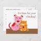 Påminn dina kunder om att det är dags att kontrollera med de här söta hund och kattvykorten. Den röda hund undersöker orangen med stetoskop.