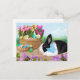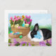 Det är Påsk tid och Vår har spritt sig på det här färgfulla vykortet med en kuddig, söt chick och vackra blommor!