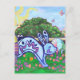 Påskägget Hunt Postcard med vår roligt och färgade teckning av en Native American stil Blue-kanin som hoppar mellan gömt dekorerade Påskägg på en grassgård med blomsterspridning, en tegelvägg och en solvåg himlar är ett underbart sätt att skicka ut dina semesterhälsningar till Påsk. Den här lekperioden målades digitalt av vår talangfulla barnillustratör i bok, Traci Van Wagoner, och är perfekt för alla som kärlek bunnies, kaniner, Påskägg, dekorativa ägg, Påsk, vår och färgstarka teckningar. Vår har spruckit. Ha en glad påsk!