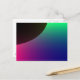 Det här vykortet har en digitalt skapat bild som liknar en mörk planets skärpa omgiven av en kosmisk aurora av grönt, blått, lila och rosa.