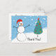 Postal Worker eller Brev Carrier "Tack"-vykort, med konstnären ritad snögubbe och Julgran på ett snöfall backe. En perfekt och ett enkelt sätt att tacka dig för de många kundpresenterna.