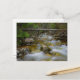 Brevkort från vatten med rörelse-oskärpa i en klippt bäck i en skog i Norge med fallande träd som bron över den.