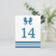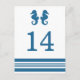 Postkort för elegant och klassiskt Bordsnummer för sjöhästen Bröllop med ett par enkla sjöar och en rad rand i mörk, marinblått och vitt. Det är enkelt att anpassa det här sjöstrandkortet med bord med information om bröllop. Om du vill ha fler anpassningsalternativ klickar du på knappen Anpassa.