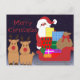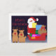 Postkortet Santa & Reindeer är ett underbart sätt att skicka semesterhälsningar på! Reflexkonstruktionen har tomten med två renar, tillsammans med hans slift fylld med paket. Texten lyder: "God jul". Anpassa texten efter behov.