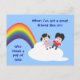 Skicka ett speciellt meddelande till din vän med vykortet för regnbåge och moln. Det här kortet visningar en roligt grafik av en pojke och flicka som flyter på ett moln nära en regnbåge. Lägg till ett eget meddelande till det här vänskapen eller skapa ett anpassningsbar-meddelande till vänstern. Bakgrunden färg i vykortet för regnbåge och moln kan ändras till kostym din smak.
