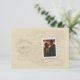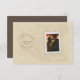 Sparar datumet eller bröllop-meddelandet. Antique karta i Nordamerika övertäckte med poststämpel och foto frimärke med litet foto.