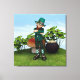 3D digital återgivning av en leprechaun som står nära en kruka av guld, ett svamprum och en schampsten. St patricks day av perfekt