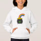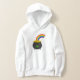 En tecknad som illustrerar guld i slutet av regnbågen med grönt schrock löv för St. Patrick's Day firande. Kaskuldron fullt av guld mynt är en presentidé för irländskt temat älskare och irländskt skattetänkande. Hämta leprechaun och hämta guld!