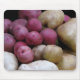 Denna konstfotografimousepad presenterar färgrika organiska potatisar för raddor som skördas precis och klart att äta, i färger av rött, purpurfärgat, rosa, gulnar, bruntet och vit. Varje potatis har dess egna unikt att forma.