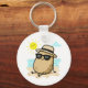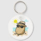 Det finns ingenting som en solig dag vid stranden. fråga den här roliga, söta potatisen som chillar vid havet. Han har mörka glasögon, en cool hatt och en lycklig leende. Han kopplar av på det varma sandet och tittar ut över det blå havet. En glad gul sol lyser ner på honom från en nästan klar himmel, med bara två små fåglar och enstaka moln som passerar förbi. En söt nyckelring som ger sommarstämning.